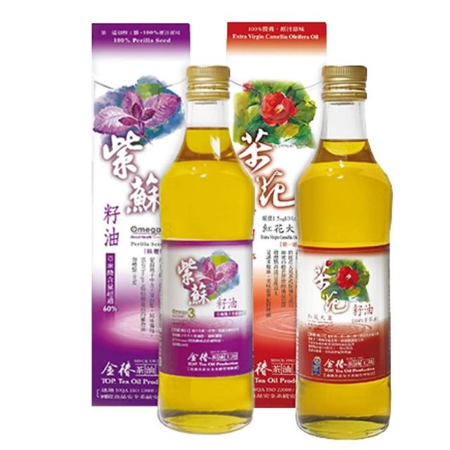 金椿茶油工坊紫蘇籽油500ml (酸價0.2%)+紅花大菓 苦茶花籽油 (酸價0.2%)500ml (兩款各1瓶) (可生飲)