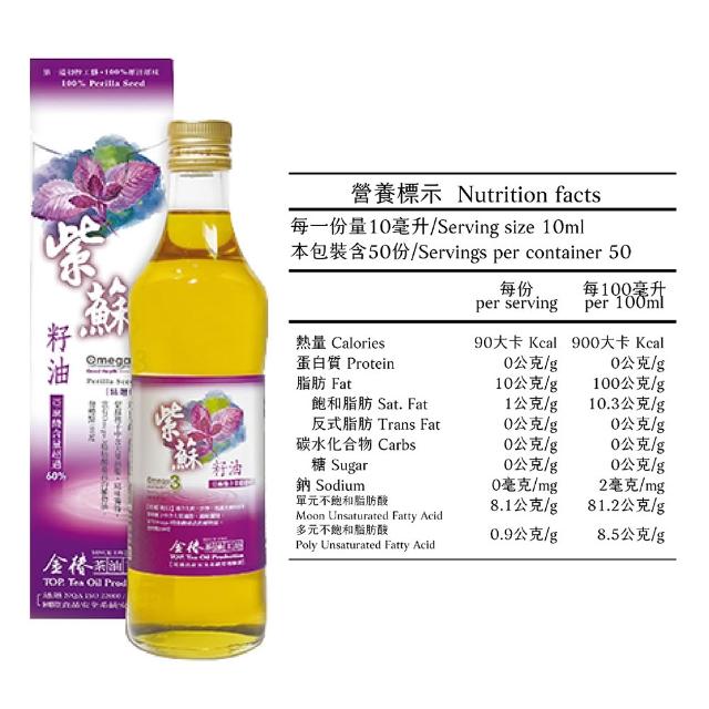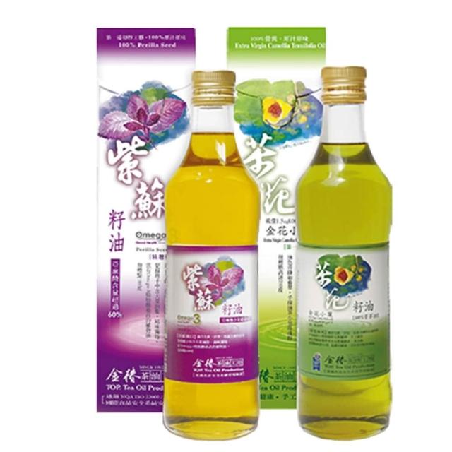 金椿茶油工坊紫蘇籽油500ml+金花小菓 苦茶花籽油500ml (兩款各1瓶) (可生飲/金花小菓酸價0.41%/紫蘇籽油酸0.2%
