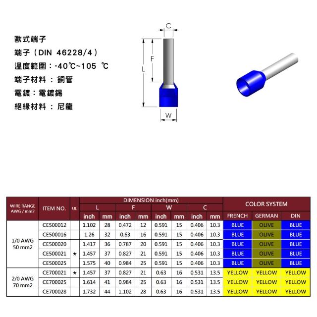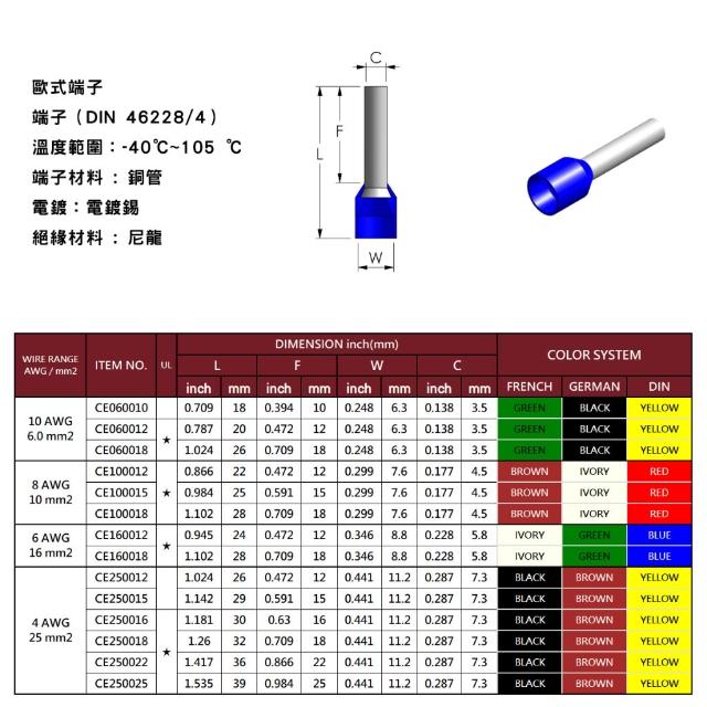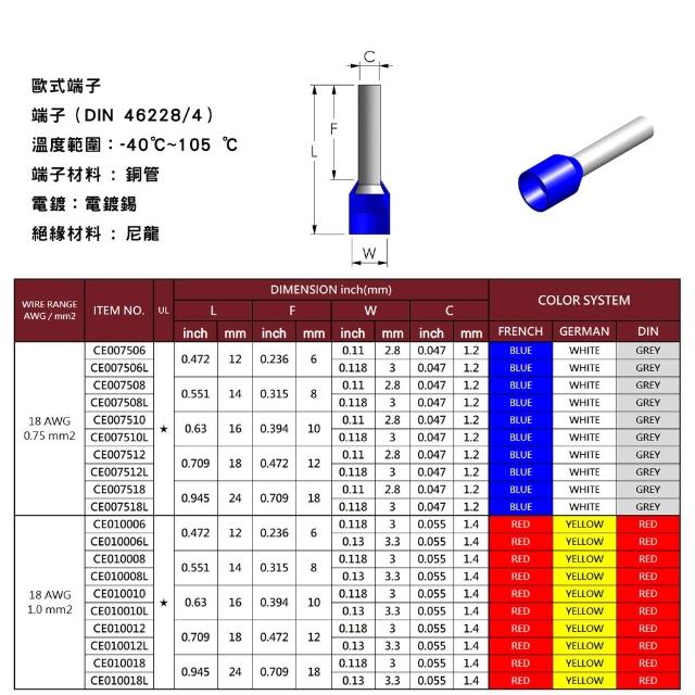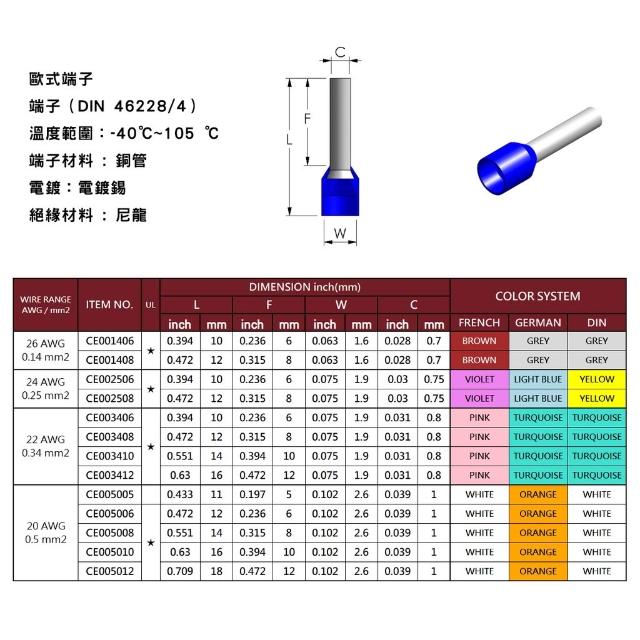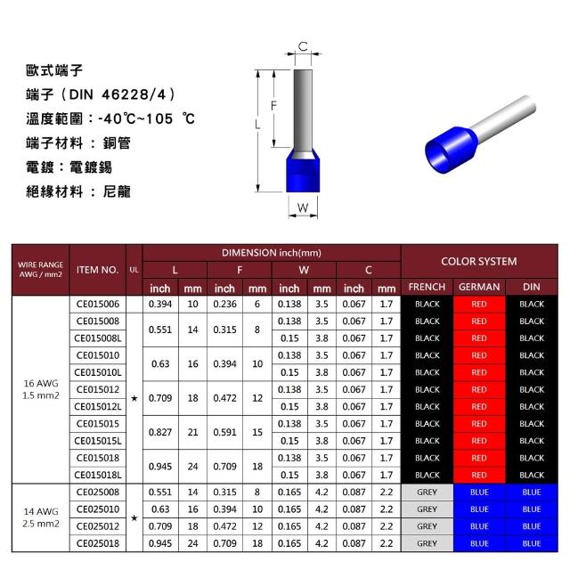 歐式端子 絕緣歐式端子 0.14~2.5mm 管型端子 管狀端子 DIN 46228/4 10入裝