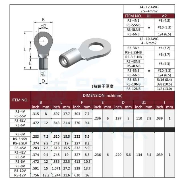 裸端子 O型端子 R1~R60 #22~#1AWG 裸型端子 O形端子 金屬裸端 壓接端子 壓著端子 O端 圓型端子