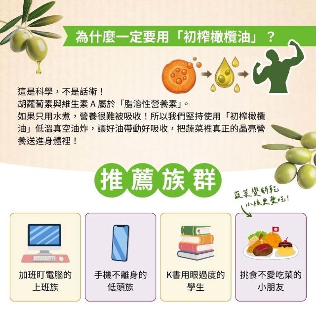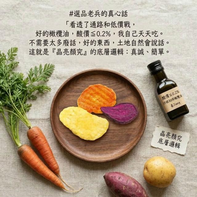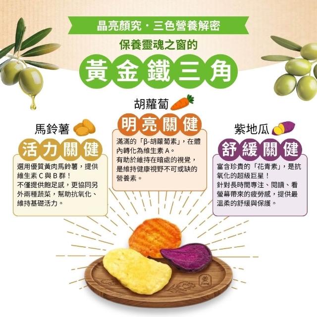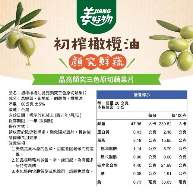 姜Jiang好物 初榨橄欖油綜合蔬菜片 - 晶亮顏究三色原切 (60g,馬鈴薯片、紫地瓜片、胡蘿蔔片) 無糖、無添加