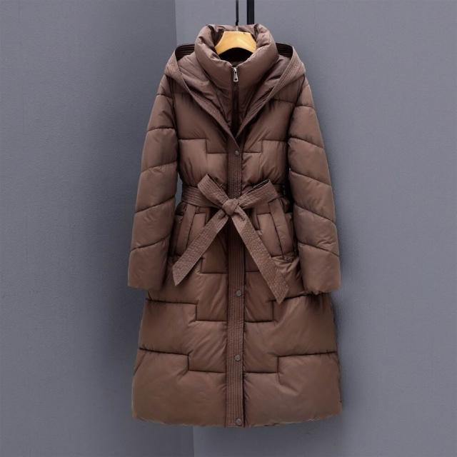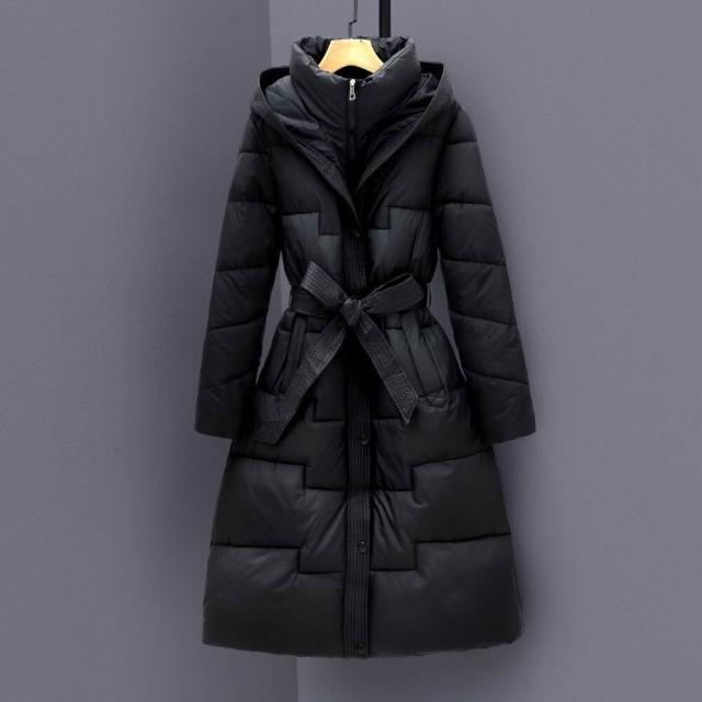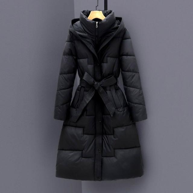 鋪棉外套女2025新款羽絨外套棉服女裝中長版過膝連帽棉服收腰顯瘦冬季加厚外套棉衣禦寒保暖羽絨服戶外滑雪登山服機車騎行服