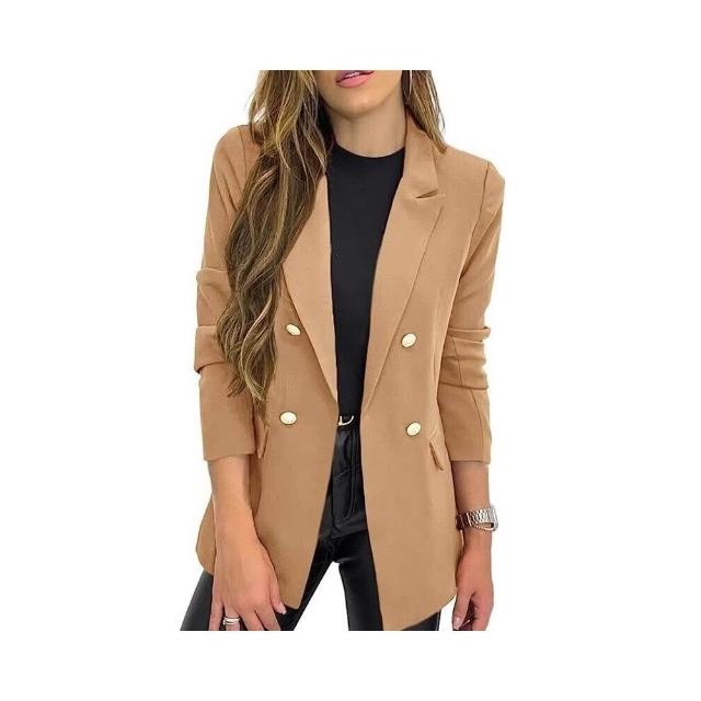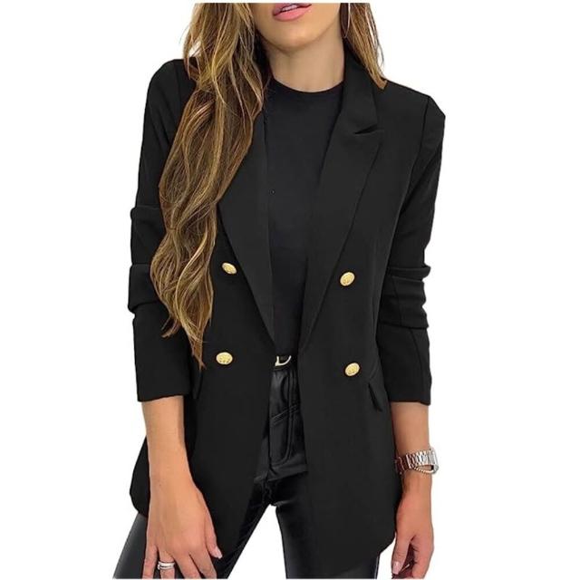 2023新款小西裝外套女式純色休閑長袖翻領紐扣外套