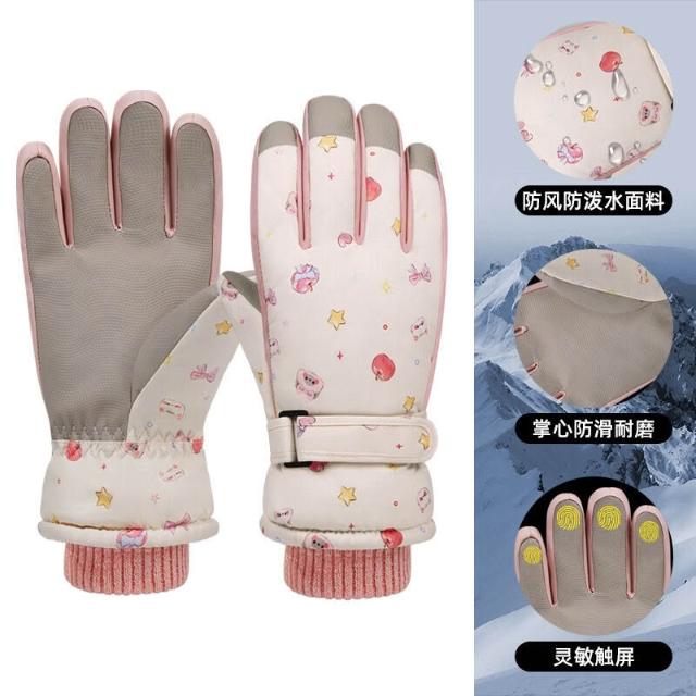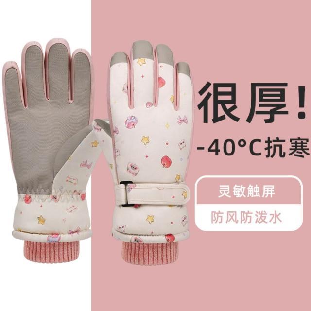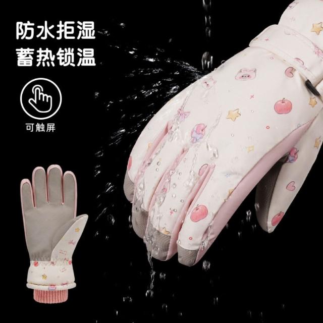 手套滑雪手套女冬季可愛保暖戶外運動防風水防寒加絨加厚防滑騎行手套機車滑雪防寒保暖可觸屏摩托車騎車防風防水騎士男/女用手套