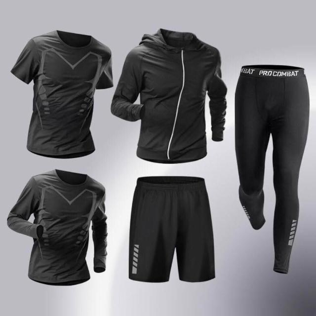 運動套裝男速幹緊身衣高彈力跑步訓練籃球服晨跑春秋圓領休閒套裝吸濕男裝排汗上衣透氣下著薄款運動短褲舒適修身長袖上衣連帽外套