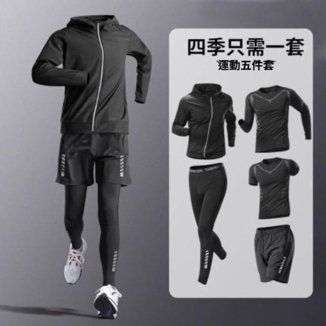 運動套裝男速幹緊身衣高彈力跑步訓練籃球服晨跑春秋圓領休閒套裝吸濕男裝排汗上衣透氣下著薄款運動短褲舒適修身長袖上衣連帽外套