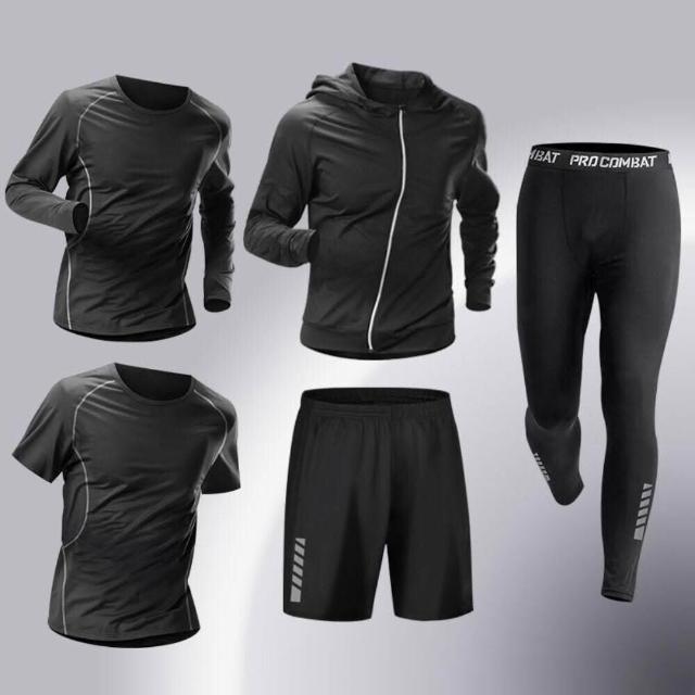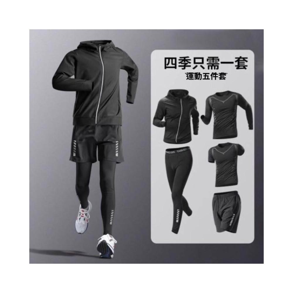 運動套裝男速幹緊身衣高彈力跑步訓練籃球服晨跑春秋圓領休閒套裝吸濕男裝排汗上衣透氣下著薄款運動短褲舒適修身長袖上衣連帽外套