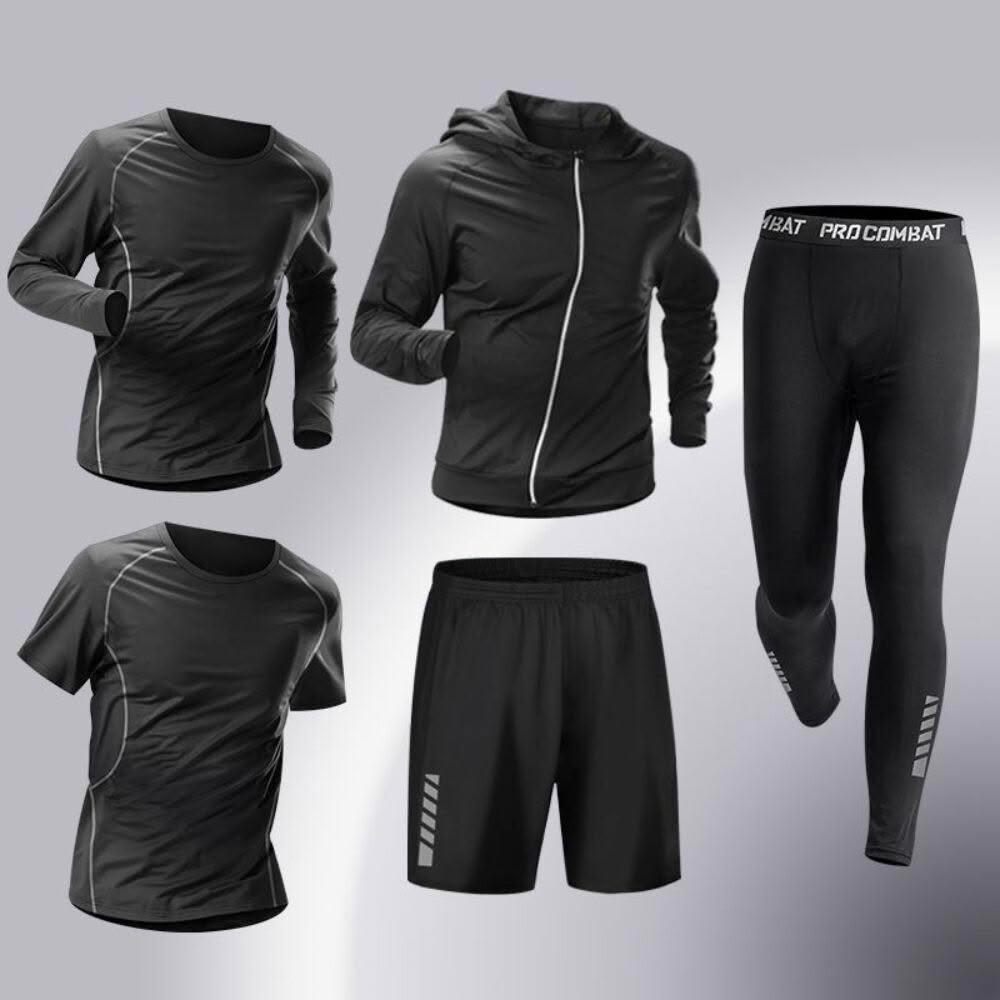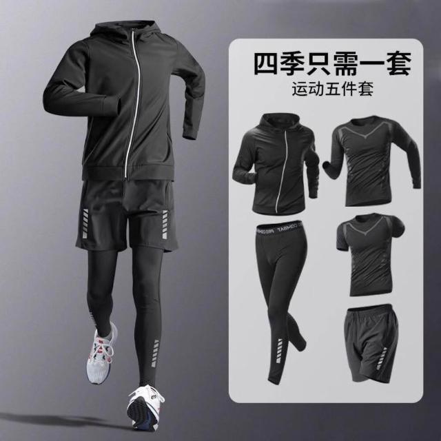 健身服男運動套裝速幹緊身衣高彈力跑步訓練籃球服晨跑春秋圓領騎行服吸濕男裝排汗透氣上衣下著修身長袖休閒短褲薄款短袖連帽外套