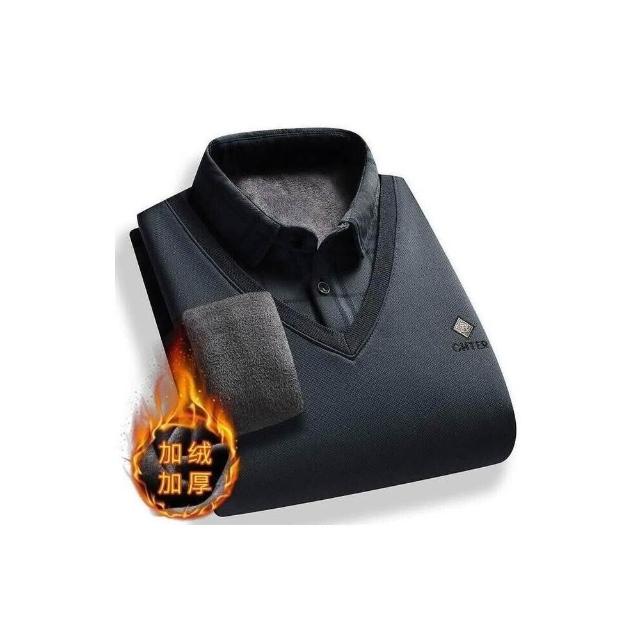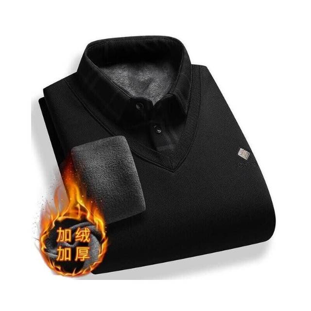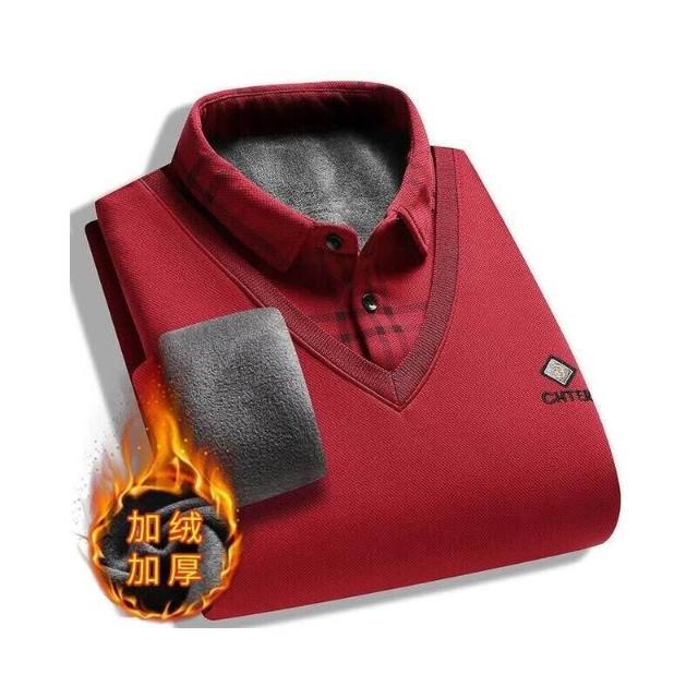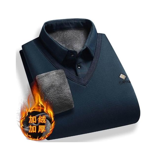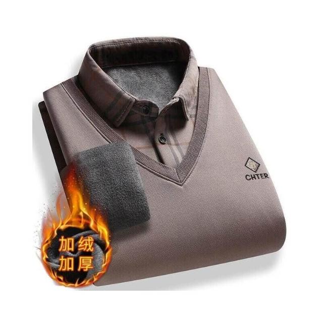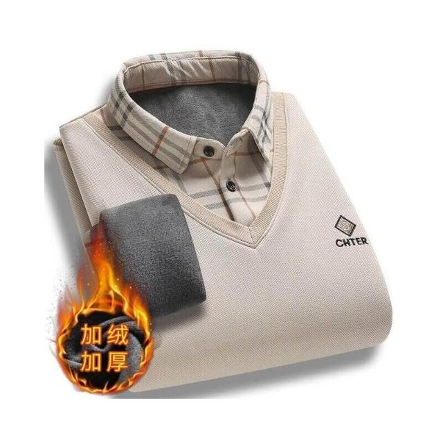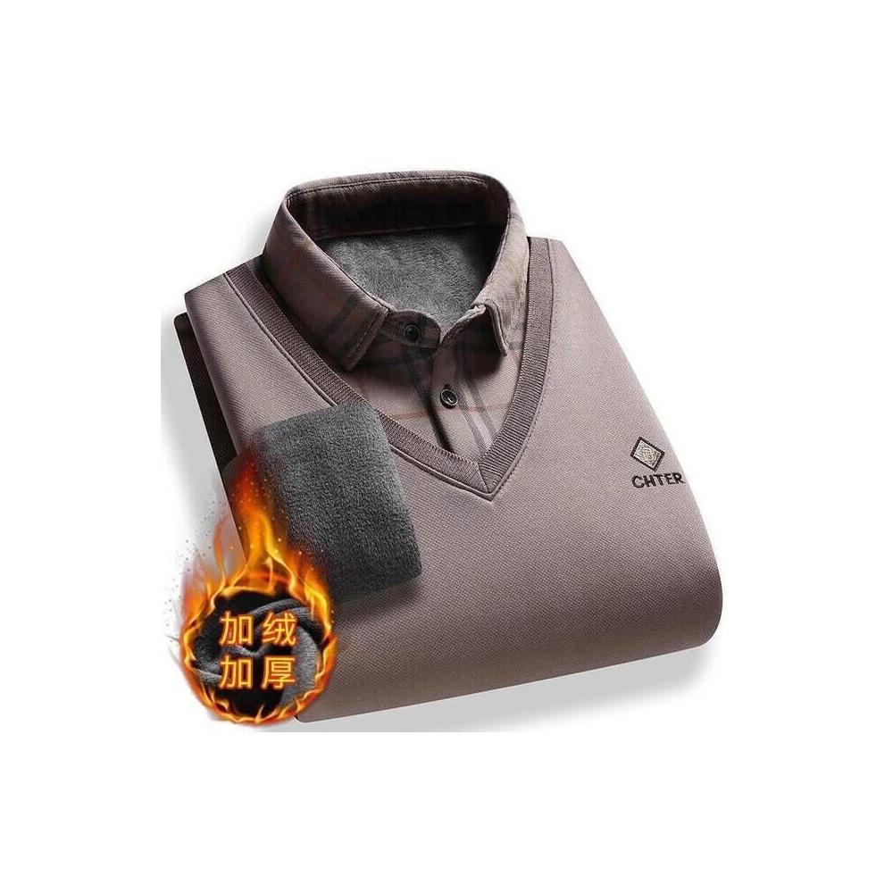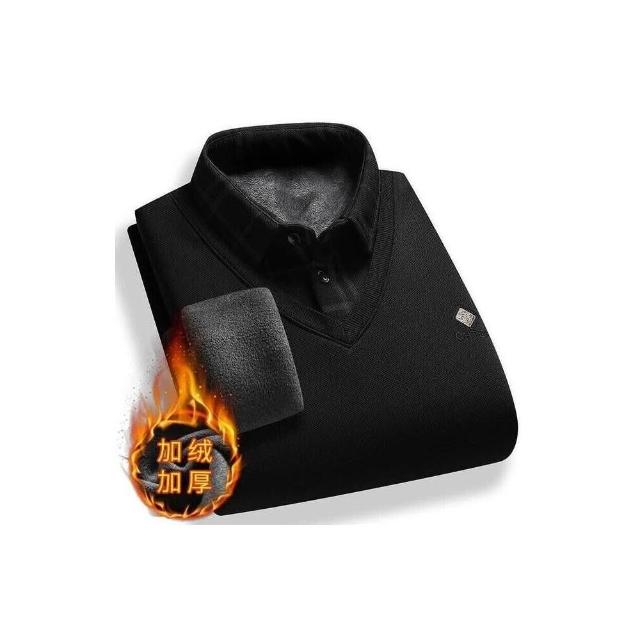 發熱衣男秋冬季加絨加厚保暖衣舒適蓄熱長袖上衣寬鬆翻領毛衣男生休閒大學T棉質男裝上衣中年爸爸商務正裝內搭假兩件刷毛上衣