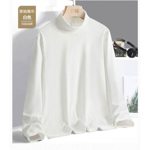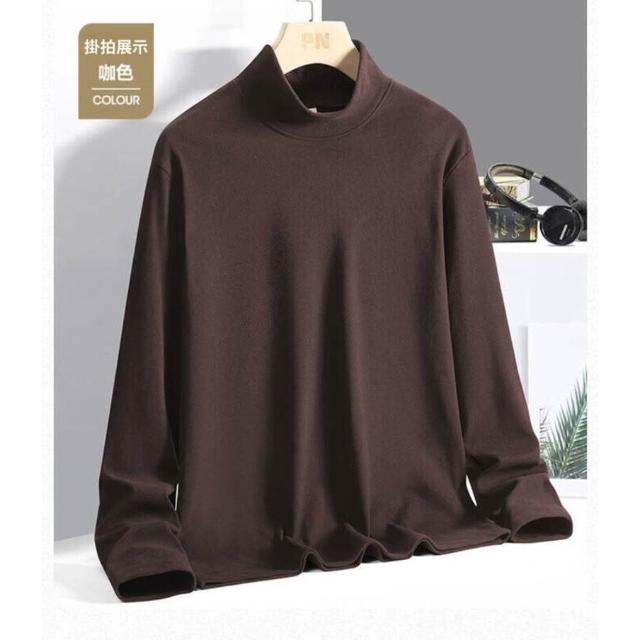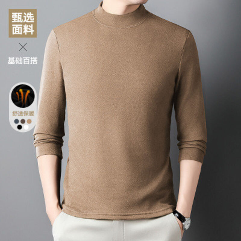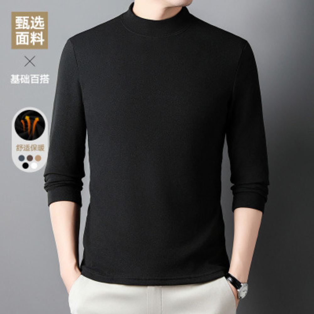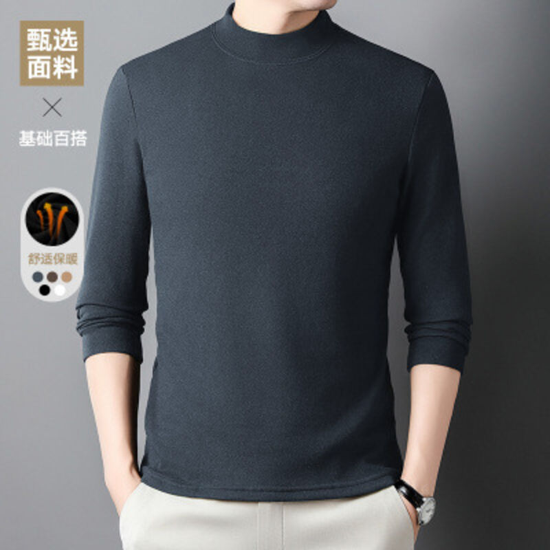 保暖衣男士半高領秋冬新款貼身套頭發熱衣打底衫百搭刷毛上衣加絨毛衣寬鬆上衣圓領衛生衣防寒德絨上衣港風潮流休閒內搭長袖T桖