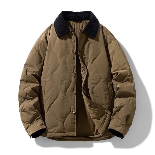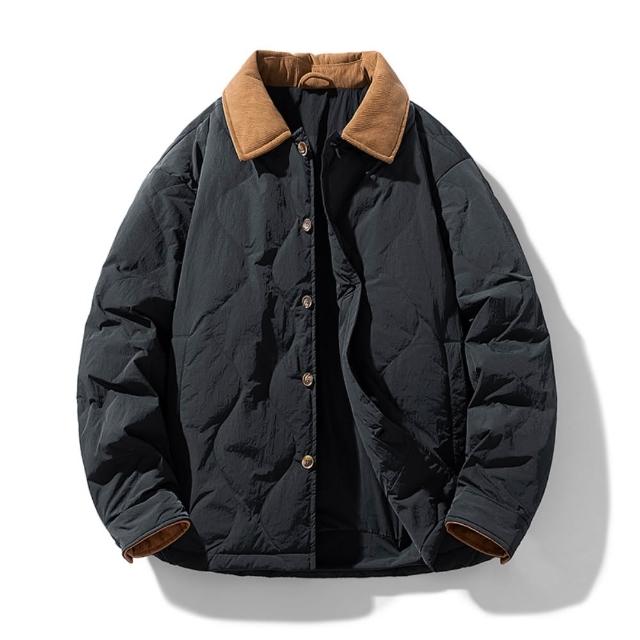 夾克上衣男棒球服冬季輕薄休閒防風外套舒適休閒翻領風衣內鋪棉外套戶外登山運動上衣青少年純色長袖透氣外套