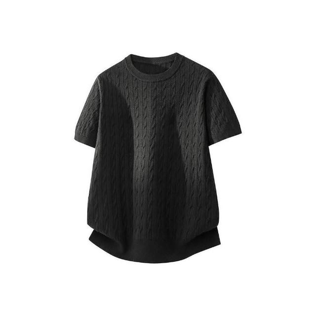 針織衫短袖毛衣女款休閑針織半袖圓領純色百搭打底衫短T麻花黑色打底衫衛生衣圓領長袖t恤女士純色內搭上衣加厚輕薄抗寒透氣棉時