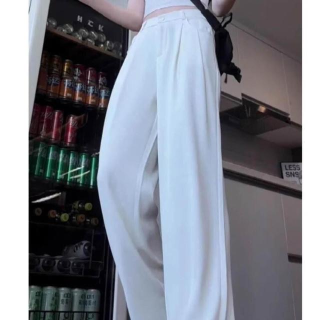 涼感褲女夏天冰絲運動速乾休閒長褲冰涼西裝褲男夏季高腰垂感直筒褲青少年時尚百搭潮牌ins高街免燙吸濕排汗闊腿褲涼感寬褲下著