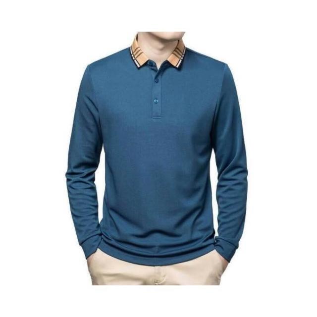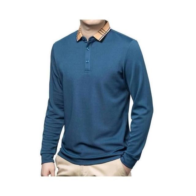 polo衫 男長袖春秋冬季青年中年Polo衫翻領高爾夫球衫商務辦公POLO衫保暖polo衫長袖t恤毛衣針織衣上衣大學t衛衣學院風青年中年爸爸痞帥風polot恤