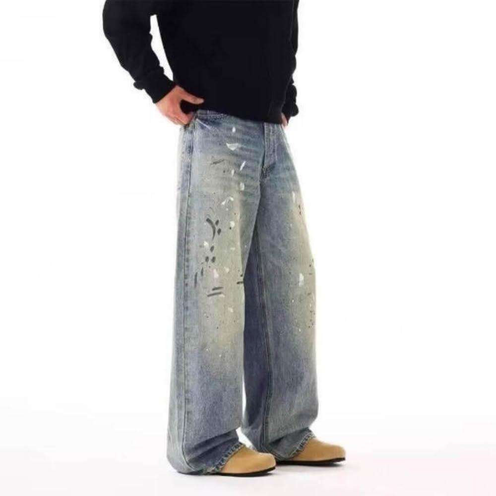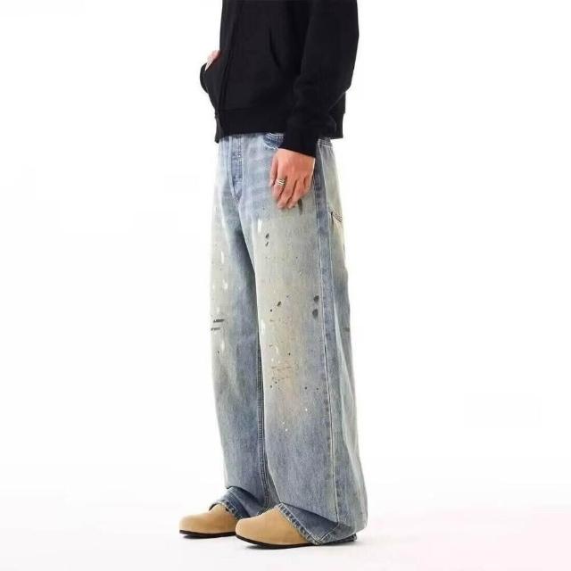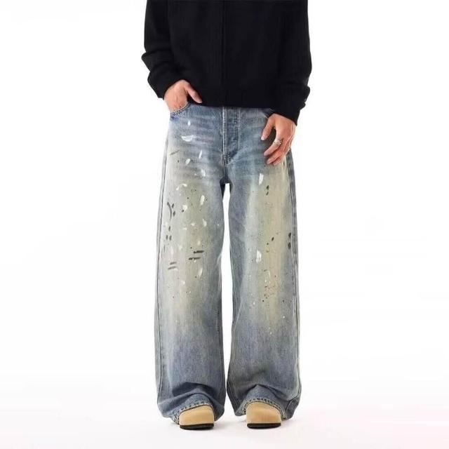 牛仔褲彎刀褲男女同款高街潮流痞帥牛仔褲彈力面料寬松版型春夏休閑百搭彎刀褲直筒褲闊腿褲緊身褲修身褲煙管褲喇叭褲微喇褲寬鬆褲九分褲長褲