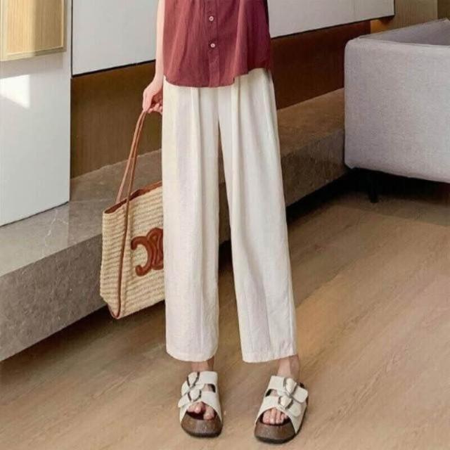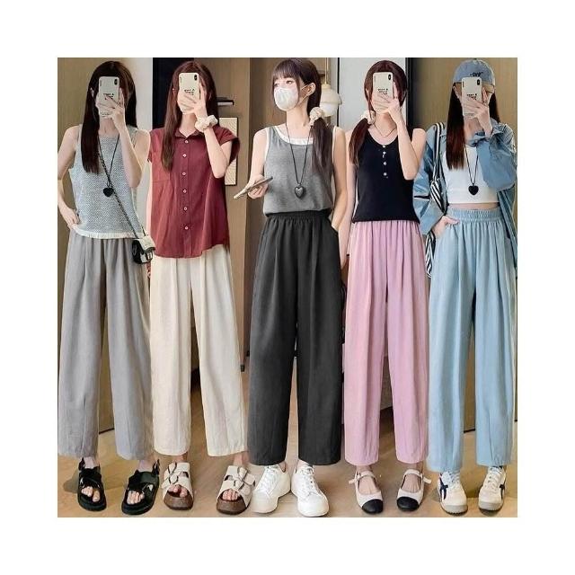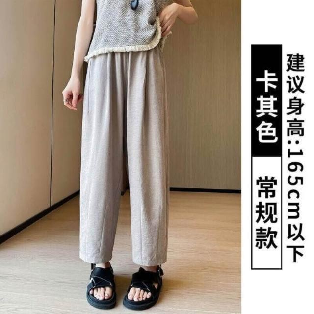 冰絲褲女高腰直筒涼感透氣顯瘦垂墜休閒褲奶芙蘿蔔褲夏季薄款休閑寬松小個子速幹棉麻山本九分冰絲哈倫褲涼感機能冰絲褲速乾抗皺顯瘦垂墜遮肉無束縛輕薄