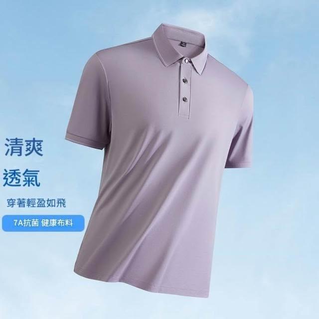 polo衫男短袖寬鬆透氣男天然桑蠶絲POLO夏天排汗涼爽Polo百搭不皺冰絲涼感衣夏季薄款休閒高爾夫球衫彈性翻領運動T恤