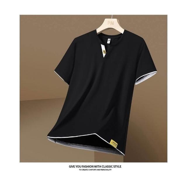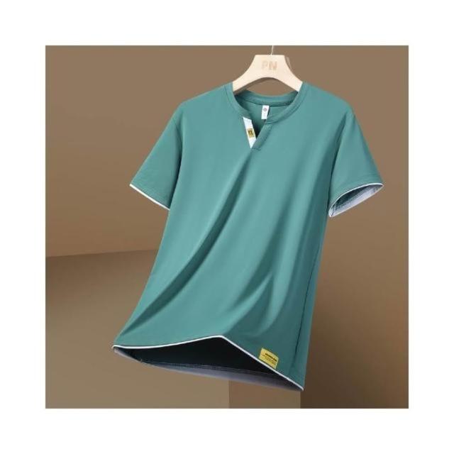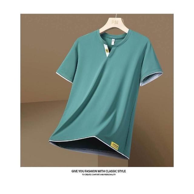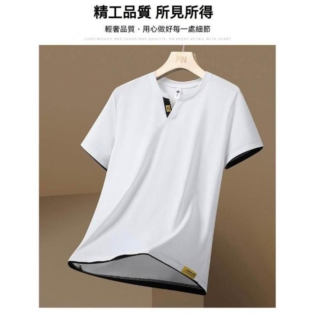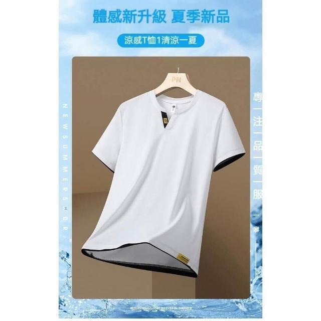 冰絲涼感衣冰絲短袖T恤男短袖男冰涼感衣冰絲上衣運動短袖夏季T恤透氣上衣涼感短袖休閒短袖垂感商務T恤時尚短袖V領T恤