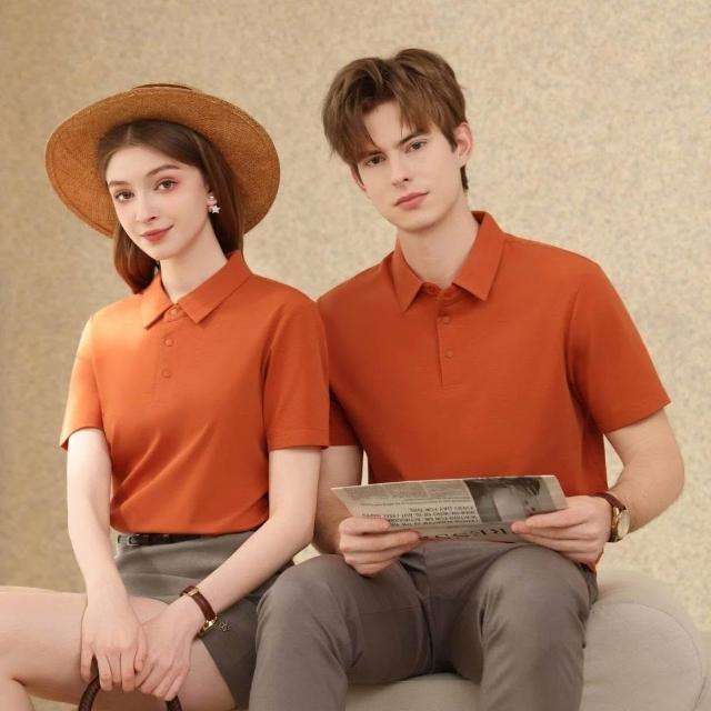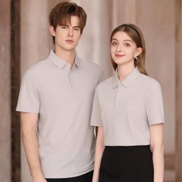 POLO 衫男女同款冰絲涼感翻領短袖透氣速乾情侶百搭上衣商務上衣素面寬鬆吸濕排汗透氣不悶熱翻領顯瘦涼感機能親膚絲莫代爾棉純色領T恤商務夏季舒適透氣POLO衫