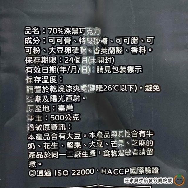 旺來興烘焙餐飲購物網H&C 70% 深黑巧克力 500g 1kg / 包 鈕扣型 鈕扣巧克力 正惠 正香軒 4-10月改為冷藏出貨