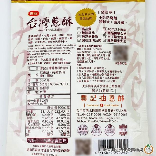 旺來興烘焙餐飲購物網鄭記油蔥酥系列 (台灣蔥酥50g / 台灣蔥酥(植物油款)60g) / 包 蔥酥 油蔥酥 100%純天然 拌麵 拌飯