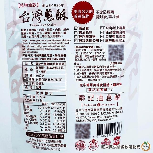 旺來興烘焙餐飲購物網鄭記油蔥酥系列 (台灣蔥酥50g / 台灣蔥酥(植物油款)60g) / 包 蔥酥 油蔥酥 100%純天然 拌麵 拌飯