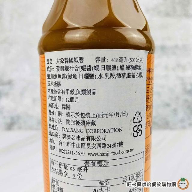 旺來興烘焙餐飲購物網清淨園 大象 韓式蝦醬 500g/瓶 韓國清正魚露 500g/瓶 蝦醬效期2026.8.14 魚露2026.10.2