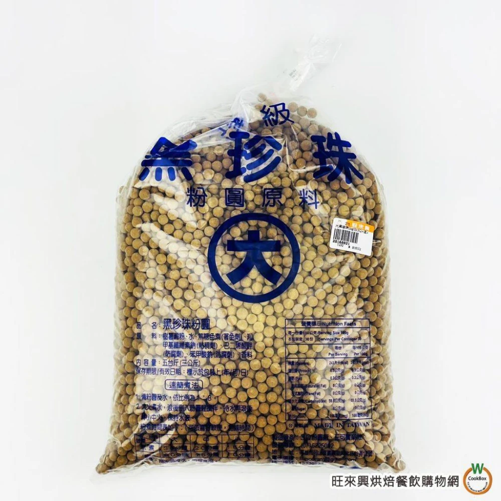 旺來興烘焙餐飲購物網黑珍珠 3kg /袋 大顆 / 中顆 (5台斤)粉圓 珍珠 飲品配料 黑珍珠 珍珠奶茶