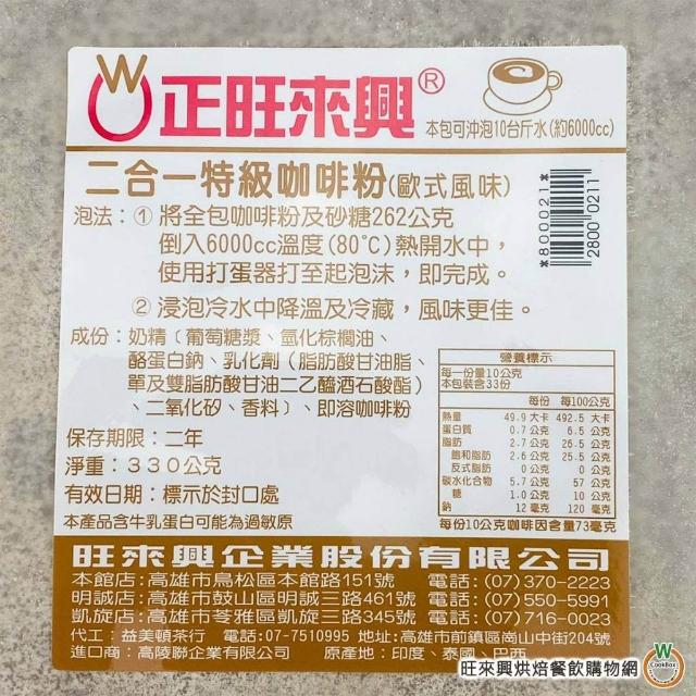 旺來興烘焙餐飲購物網特級咖啡牛奶二合一330g / 包 不含糖