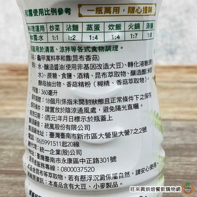 旺來興烘焙餐飲購物網龜甲萬 料亭和露 鰹魚/昆布香菇 360ml /瓶 擠壓瓶 蒸炒煮拌 高湯