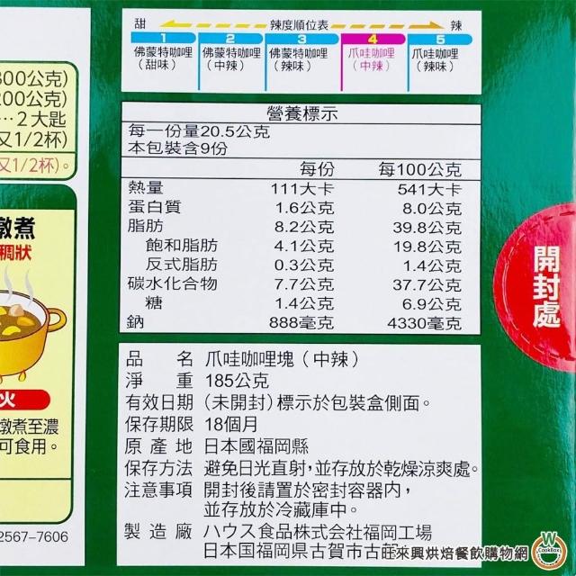旺來興烘焙餐飲購物網好侍 爪哇咖哩 中辛 185g/盒 日本 咖哩塊 辣咖哩