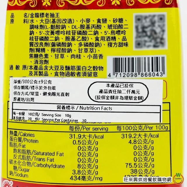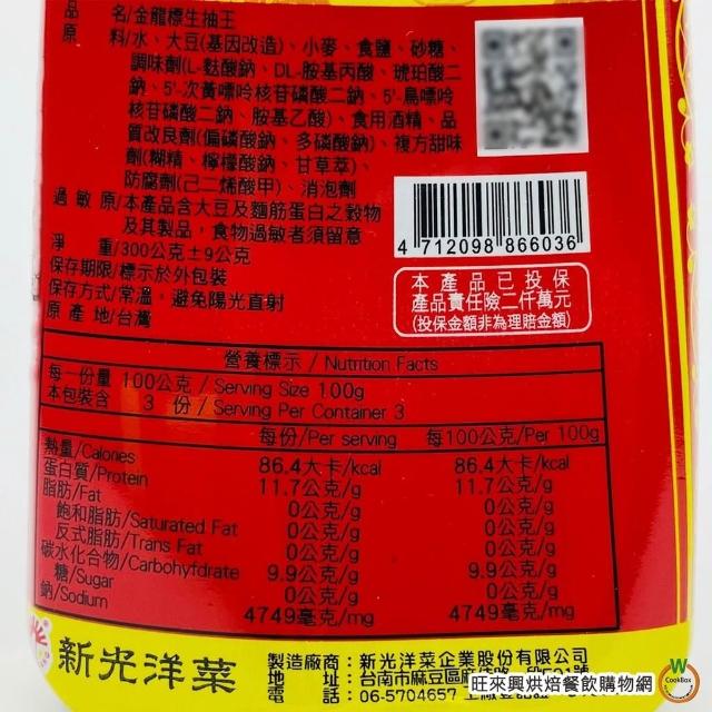 旺來興烘焙餐飲購物網新光洋菜 金龍標 共兩款 生抽王 / 老抽王 300g/瓶 調味料 生抽 老抽 醬油 總重約:345g