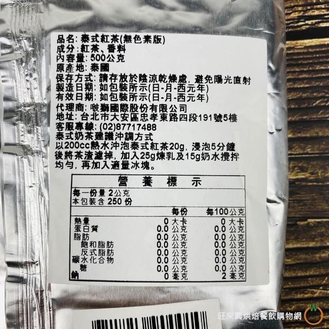 旺來興烘焙餐飲購物網手標 泰式茶 泰式紅茶 500g (無添加色素) / 包 台灣販售專用包