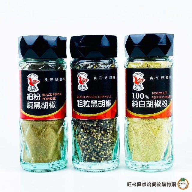 旺來興烘焙餐飲購物網G飛馬 100%純白胡椒粉 45g / 粗粒純黑胡椒 45g / 細粉純黑胡椒 40g /瓶