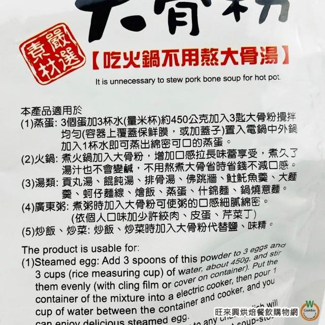 旺來興烘焙餐飲購物網金錢豹 大骨粉 / 香菇蔬菜粉 1kg 高湯粉 火鍋湯底 大骨湯粉 蔬菜湯粉 蒸蛋 粥 炒飯 炒菜 水餃