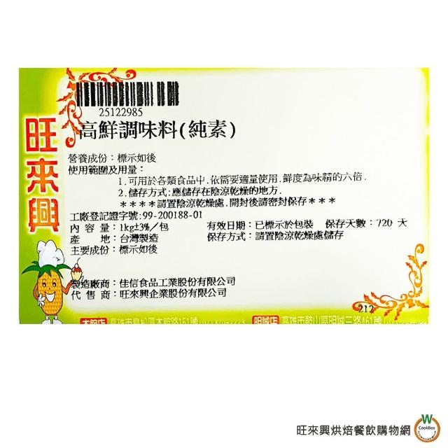 旺來興烘焙餐飲購物網旺來興 高鮮調味料(純素) 1kg / 包