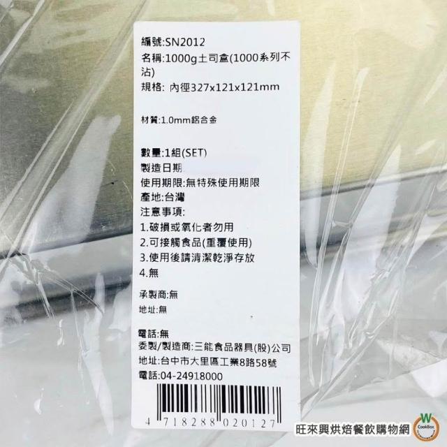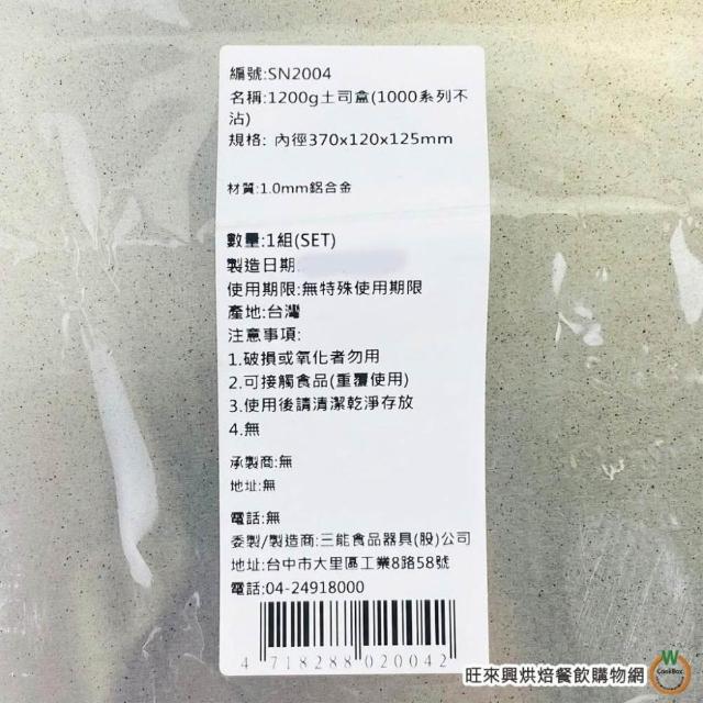 旺來興烘焙餐飲購物網三能 不沾吐司盒 吐司模 SN2004/SN2012/SN2022/SN2091/SN2171