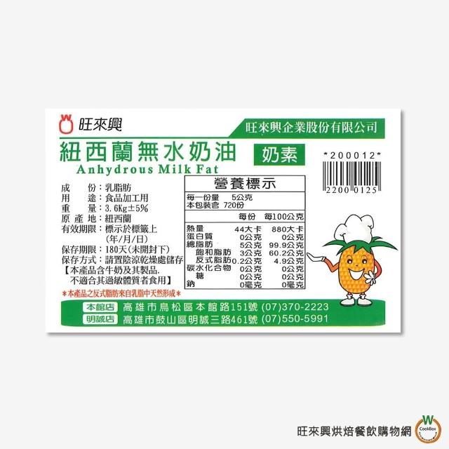 旺來興烘焙餐飲購物網紐西蘭無水奶油(酥油) 3600g (總重:3900g) / 罐