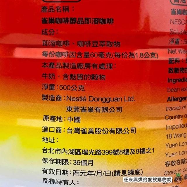 旺來興烘焙餐飲購物網雀巢 醇品風味咖啡500g / 罐【效期2028.1.9】