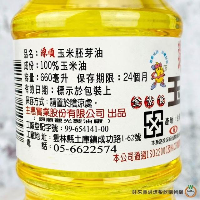 源順100%玉米油660ml / 瓶(總重:640g) 烘焙 蛋糕 餅乾 爆米花 玉米胚芽油 有效日期2028.1.11