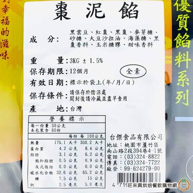 旺來興烘焙餐飲購物網台傑 棗泥豆沙1kg 3kg / 包 棗泥餡 豆沙餡 南棗核桃糕