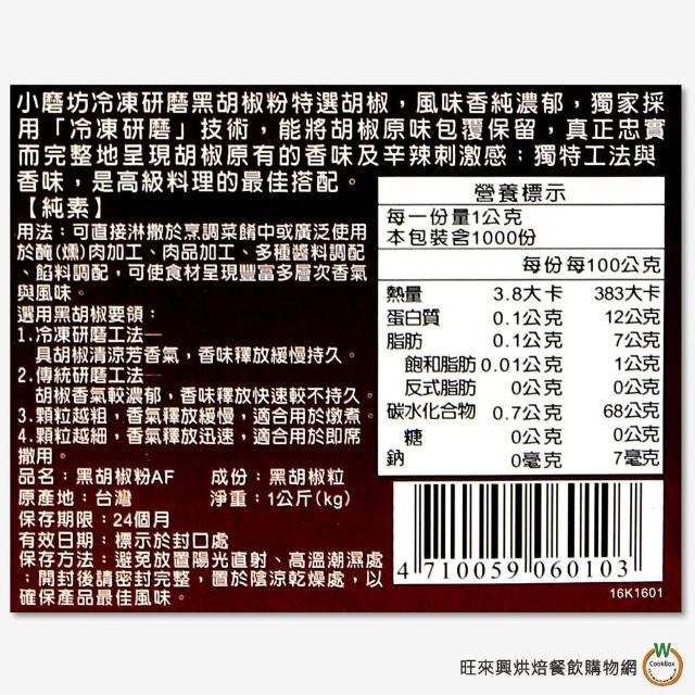 旺來興烘焙餐飲購物網小磨坊 業務用黑胡椒粉1kg / 包