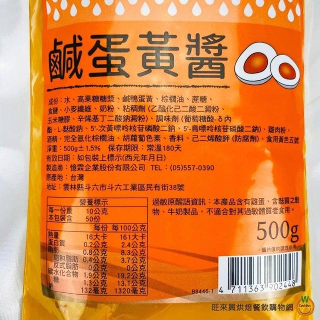 旺來興烘焙餐飲購物網憶霖 鹹蛋黃醬500g / 包 金沙 金沙料理【效期2026.7.27】