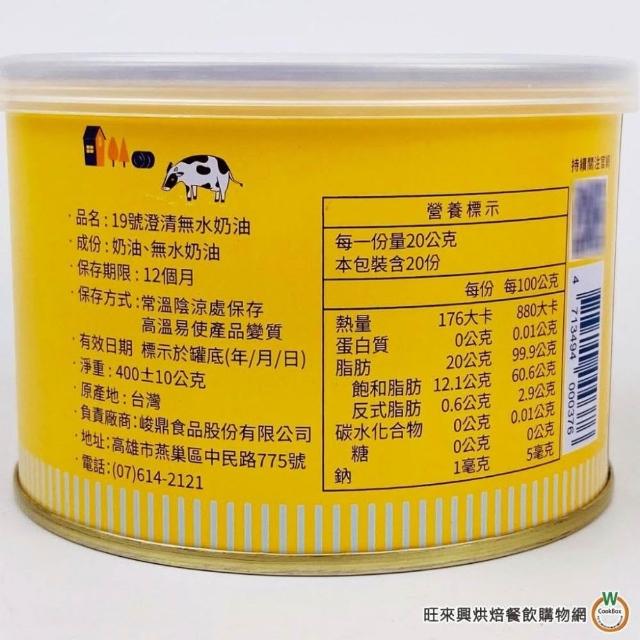旺來興烘焙餐飲購物網19號 澄清無水奶油 400g/罐 台灣製 NO.19 Clarified Butter 無水奶油 奶油 酥油