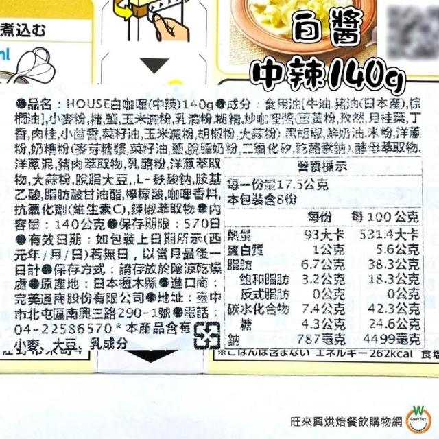 旺來興烘焙餐飲購物網好侍 House 濃郁 白咖哩 / 黑咖哩 黑白咖哩 黑咖哩 奶油咖哩 中辛 中辣 日本 咖哩塊