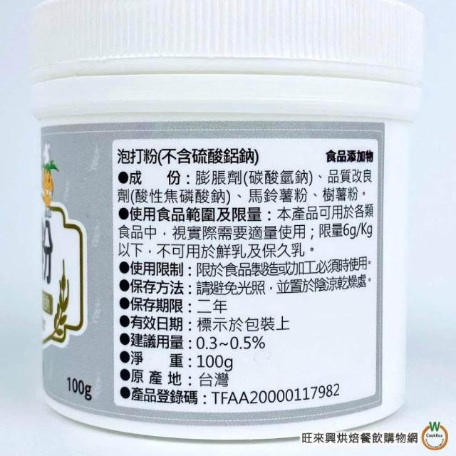 旺來興烘焙餐飲購物網旺來興 泡打粉 (無鋁) 100g / 罐 BAKING POWDER 發酵 烘焙 柏泰