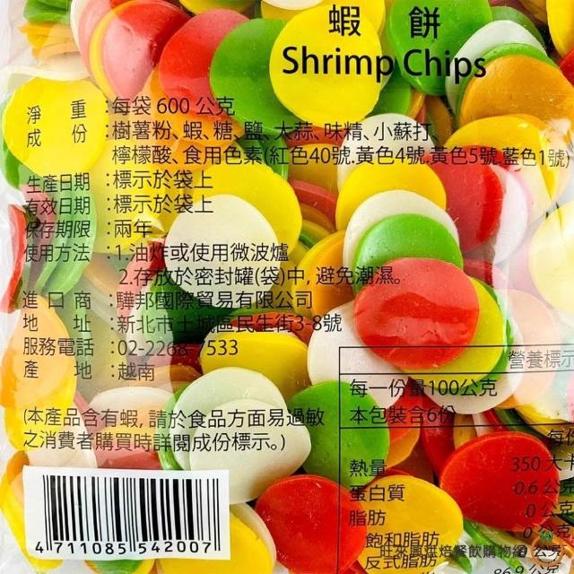 旺來興烘焙餐飲購物網金美達 蝦片 蝦餅 600g / 包 葷食 生蝦餅 生蝦片 可用氣炸鍋 迷你蝦餅 彩色蝦餅