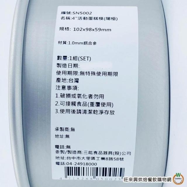 旺來興烘焙餐飲購物網三能 SN5002 4吋 活動 蛋糕模 (陽極) /個 活底蛋糕模