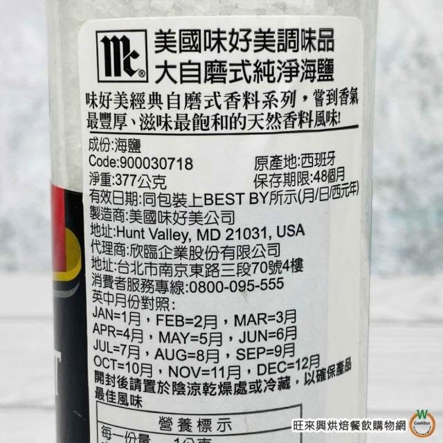 旺來興烘焙餐飲購物網MC 味好美 自磨式純淨海鹽 60g /瓶 377g /瓶 研磨式 鹽巴 總重170g/470g