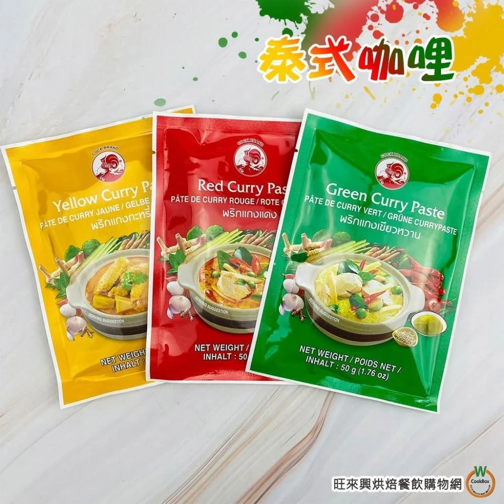 旺來興烘焙餐飲購物網COCK 泰式咖哩 系列 黃咖哩 紅咖哩 綠咖哩 50g /包 南洋咖哩 五辛素